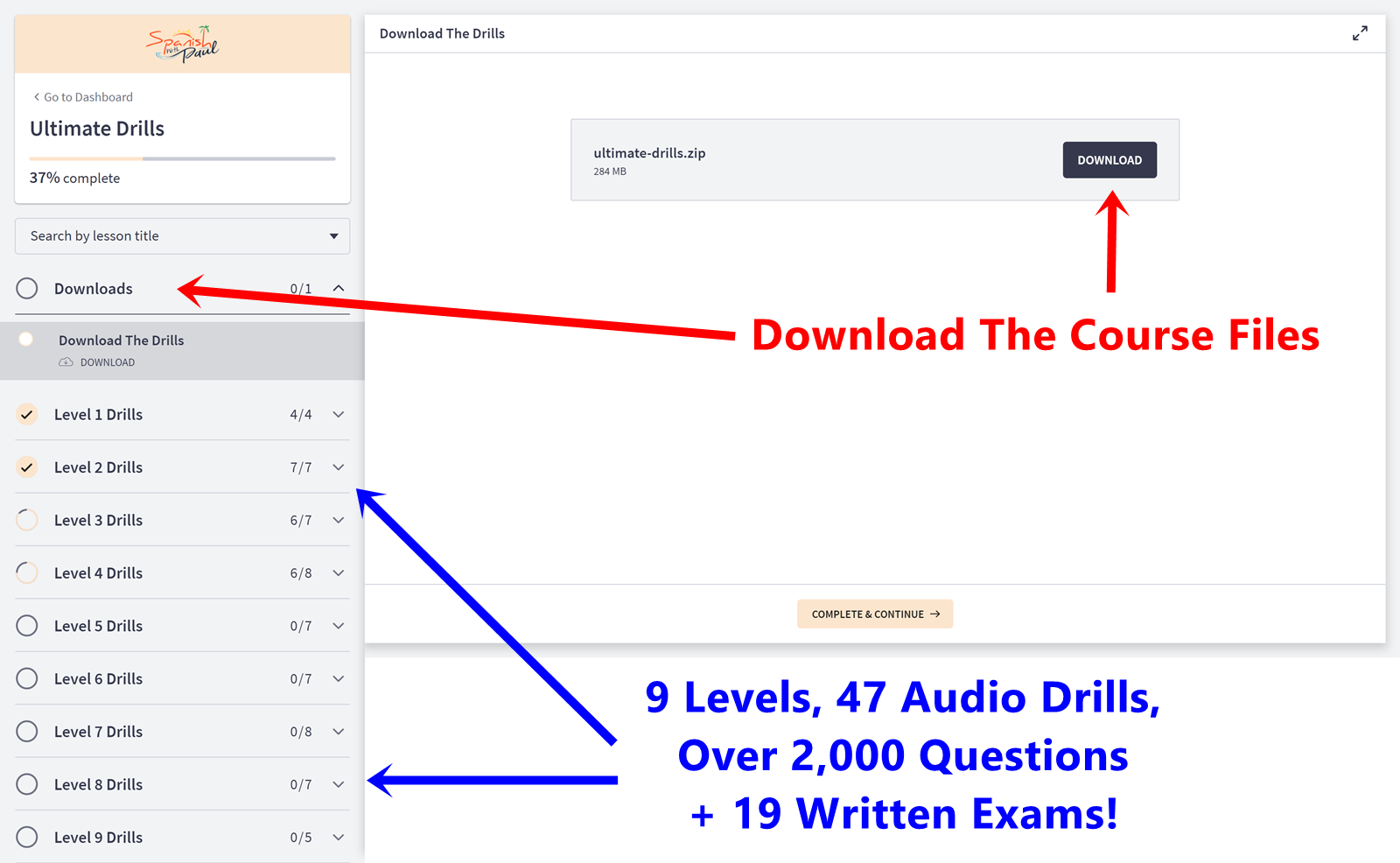 You can practice the most important and key concepts of Spanish With Paul while driving, out walking the dog, while exercising etc.